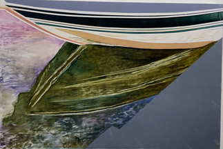 This painting shows the underside of my dad's bass fishing boat in Minnesota. I don't generally sketch out elements of the water before I paint, but I did this time using soft pastel because I wanted to be more precise in where I placed the reflections of stripes.